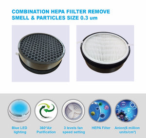 - MULTI STAGE FILTRATION SYSTEM : True HEPA Filter and Activated Carbon Filter. It removes 99.97% of dust, pollen, smoke, odor, mold spores, and pet dander. It filters particles as small as 0.3 microns and larger. It also filters air pollution of PM 2.5