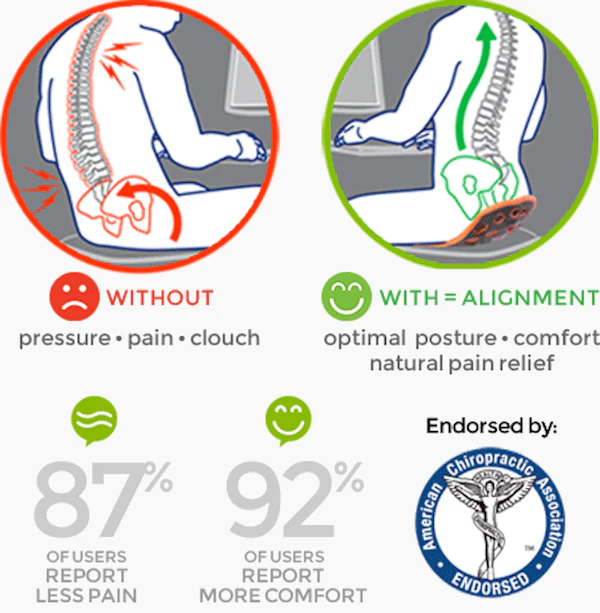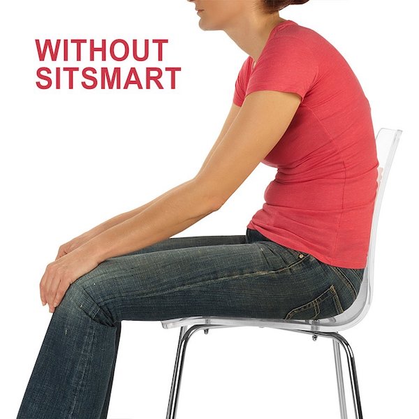If you sit for long periods of time, posture support is key. SitSmart is a simple posture corrector that restores the natural curvature of the spine to relieve lower back pain. Without SitSmart, your muscles flatten and tense under your body weight, causing pain.