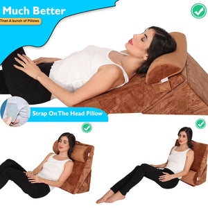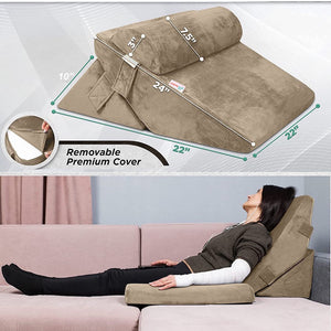 3pcs Orthopedic Bed Wedge Cushion Pillow Set with Neck Support, Brown