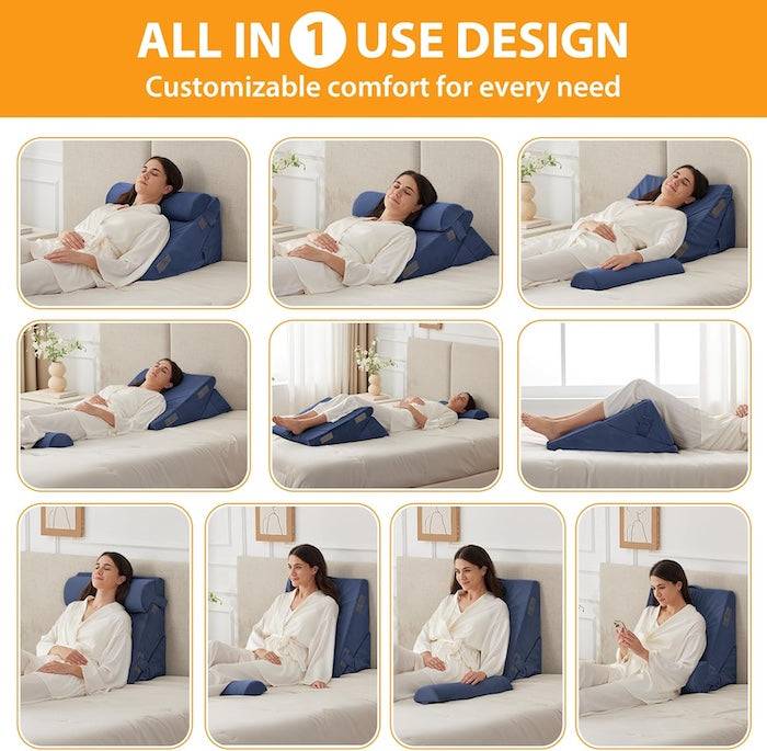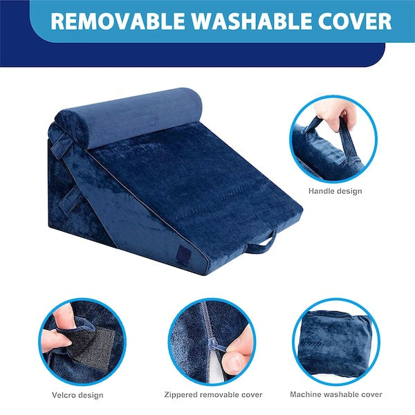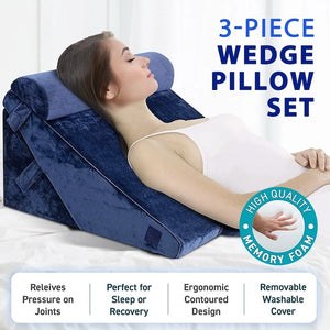 3pcs Orthopedic Bed Wedge Pillow Set with Neck Support (Navy)