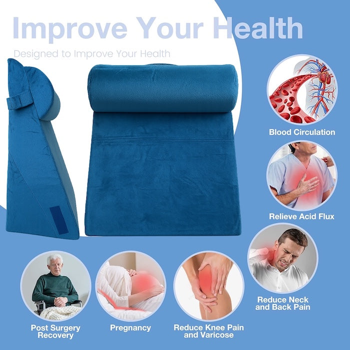 - ✅ COMFORT FIRST : Everyone has a different neck, or back position preference while falling asleep. Our versatile bed wedge pillow can provide a desired degree angle that supports a gradual, or steep slope which allows to customize it and use it in different ways to ensure a comfortable reclined position. The most effective orthopaedic wedge pillows for you!
