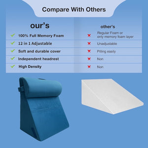 - ✅ MULTIPURPOSE 12 in 1 DESIGN : Foldable and adjustable design to elevate your head, support your back or raise your legs. Back support pillow for bed. Adjustable for use as a 12 inch high wedge or 9 inch pillow wedge for sleeping. Also used as a sleep apnea pillow, anti snore pillow, bed rest pillow or back pillow for sitting up in bed. The spacious dimensions of 22'' depth x 22'' width also provide a relaxation area that enhances bed quality.