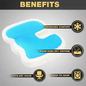 - Cooling gel memory foam cushion: this cushion comes with heat-dissipating gel technology made of durable memory foam with cool off gel layer on top for superior comfort. The innovative seat cushion is a gel / memory foam hybrid foam holds better its not-too-firm, not-too-soft