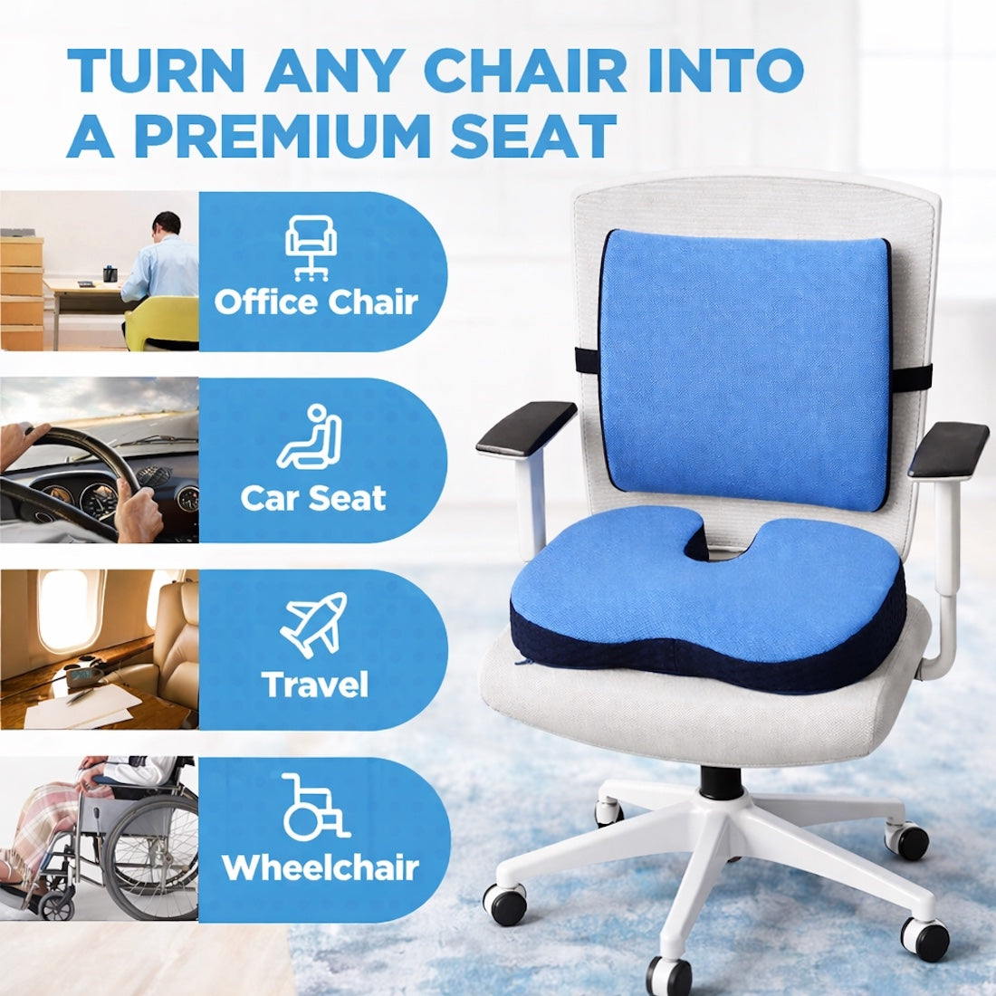 - ✅ 𝗨𝗦𝗘 𝗜𝗧 𝗔𝗡𝗬𝗪𝗛𝗘𝗥𝗘 – 𝗜𝗡𝗦𝗧𝗔𝗡𝗧 𝗖𝗛𝗔𝗜𝗥 𝗨𝗣𝗚𝗥𝗔𝗗𝗘 : Transforms any hard chair into a comfortable seating space — perfect for office chairs, work-from-home setups, car seats, dining chairs, and travel.