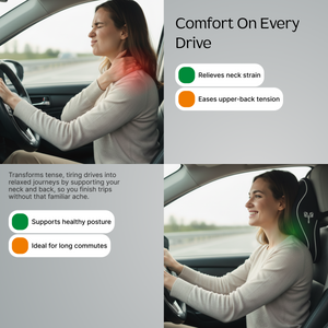 It reduces neck strain, supports proper cervical alignment, and prevents fatigue during extended driving.