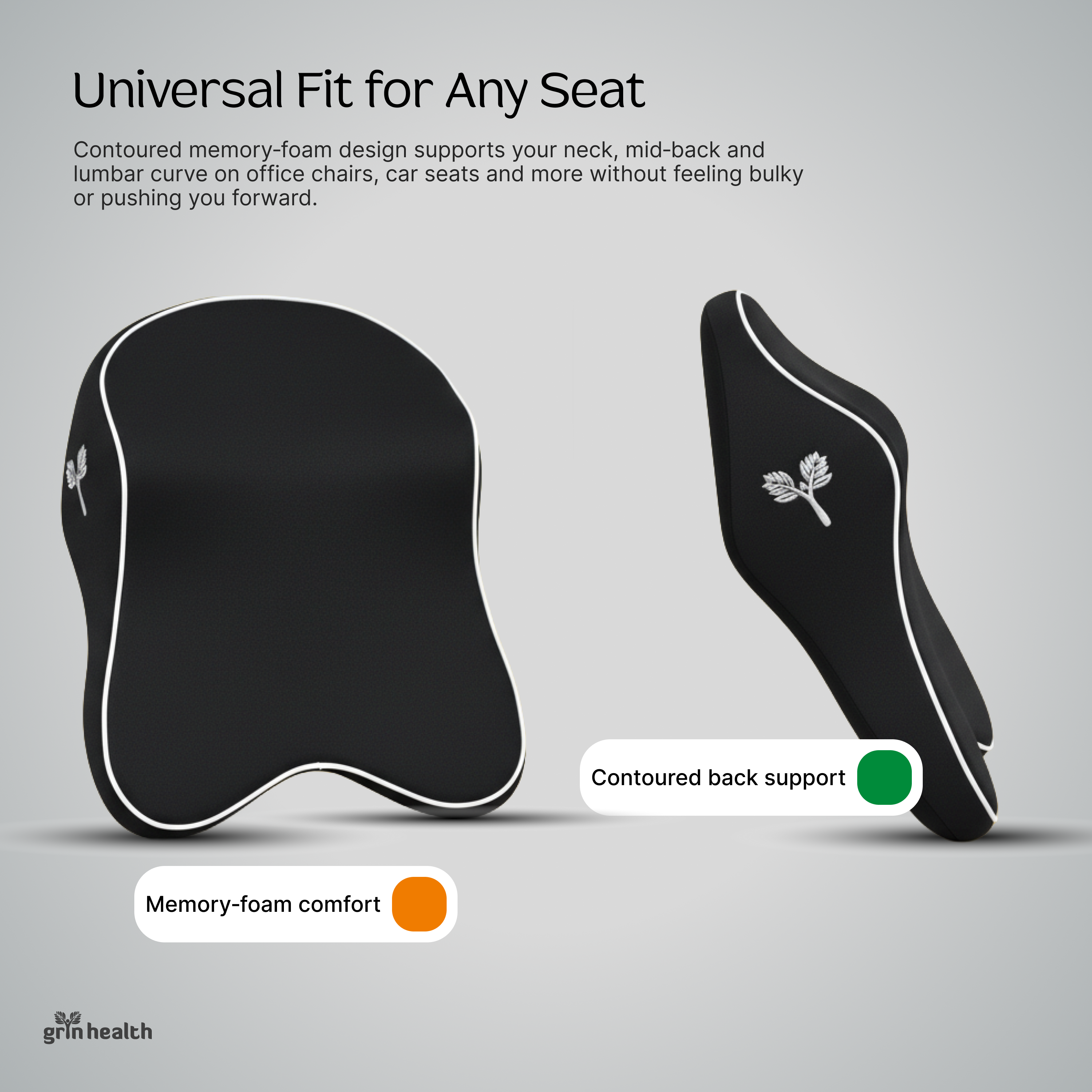 Structured to follow natural back contours and provide balanced lumbar support without bulk.