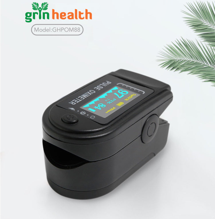 - EASY TO USE: Grin Health pulse monitor is easy to use and has an efficient One Button Operation. Our SPO2 Sensor will spot check and display in real time SpO2, PR, Pulse bar graph which great for checking your pulse signal strength.