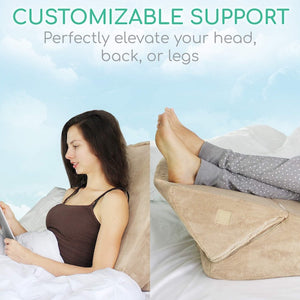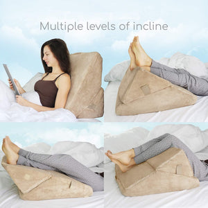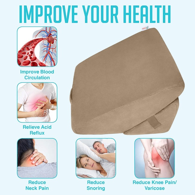 - ENHANCE YOUR HEALTH: Using an angled wedge pillow promotes blood flow throughout your body, keeps you refreshed, supports your upper/lower back, and also prevents snoring/heartburn during your sleep. Elevated pillows are a great choice to relieve back pain, knee pain, varicose veins, and more!