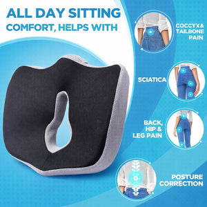 The New Coccyx Cushion's elevated rear design provides optimal sacrum support to promote a ergonomic sitting.